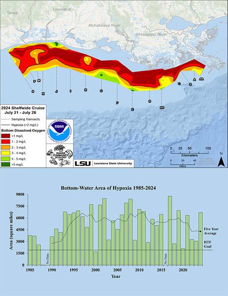 Todeszone im Golf von Mexiko mehr als doppelt so groß wie Ziel für 2035